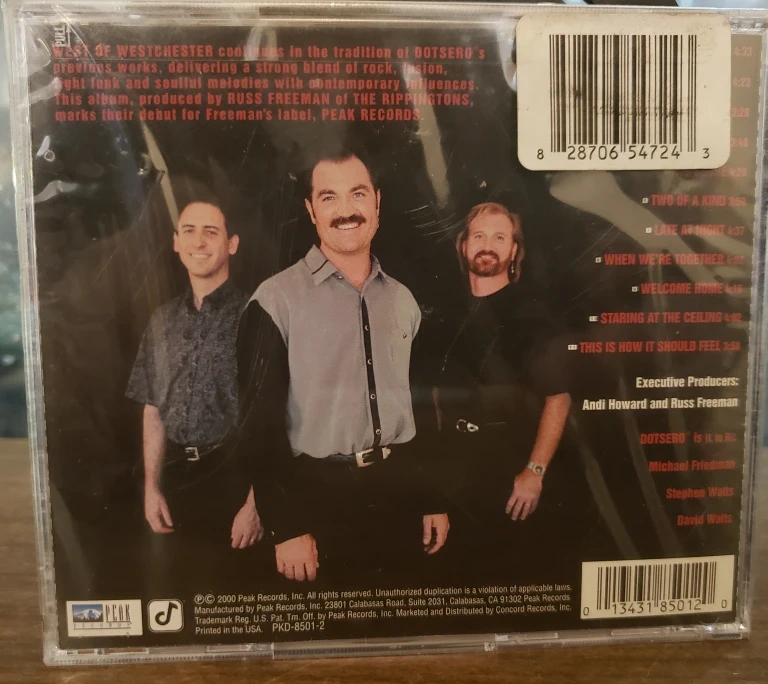 Selling a DOTSERO West of Westchester CD! It's in good condition and ready for a new home. This album, produced by Russ Freeman of the Rippingtons, marks their debut for Freeman's label, Peak Records
