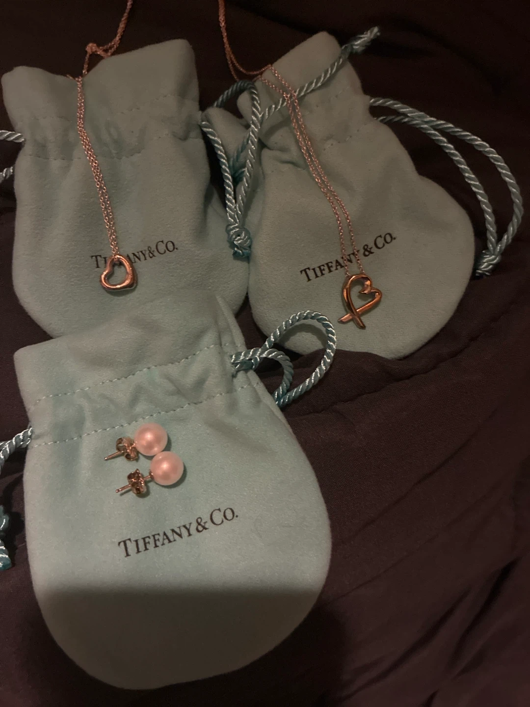 Selling a beautiful set of Tiffany & Co. jewelry along with a Tissot watch. The jewelry includes necklaces and earrings, all in their original Tiffany pouches. The Tissot watch comes in its original box, ready to wear or gift! Perfect for adding a touch of elegance to any outfit