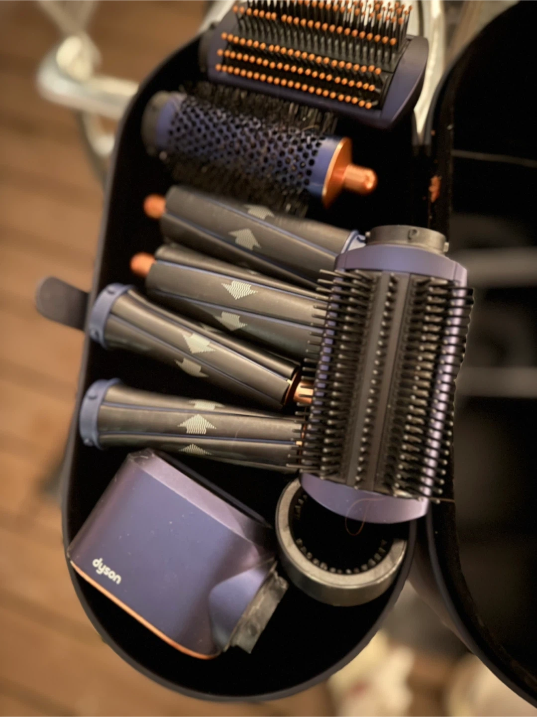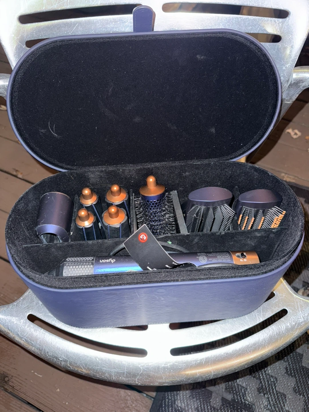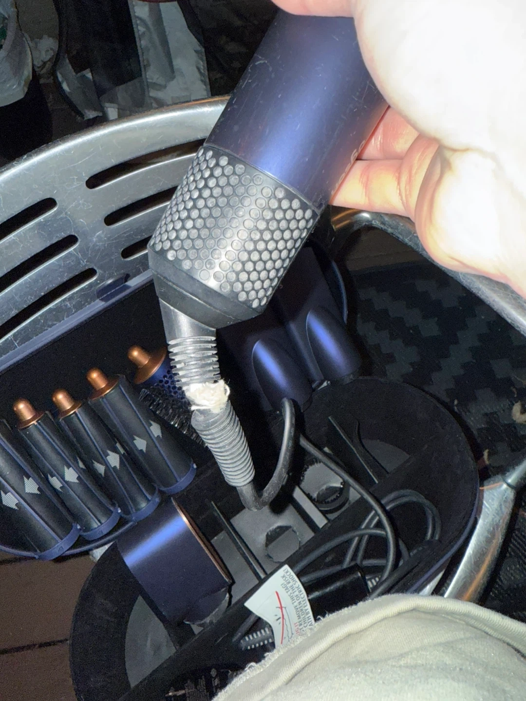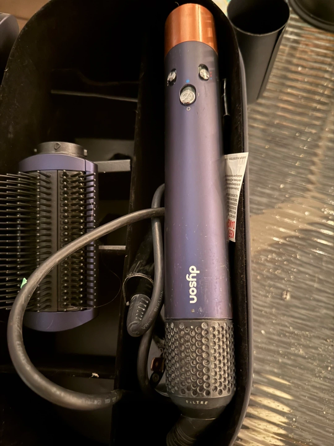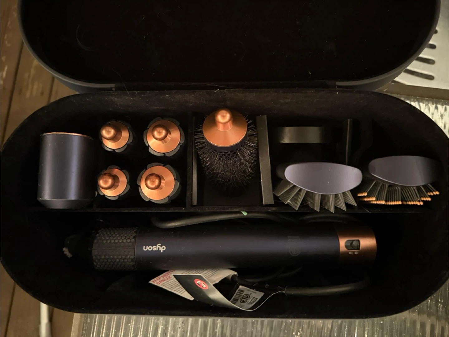 Box and all attachments included. The airwraps cord broke (see in pictures) and needs to be fixed. It no longer works because of the cord but it’s kept in perfect condition. I only ever used the blow dryer attachment all other pieces are brand new and never used.