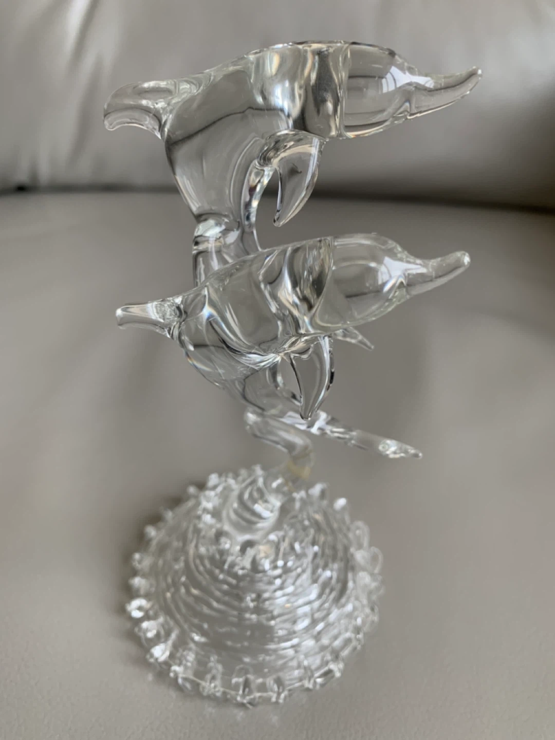“ Hand Crafted, Crystal Clear Glass Dolphin Sculpture