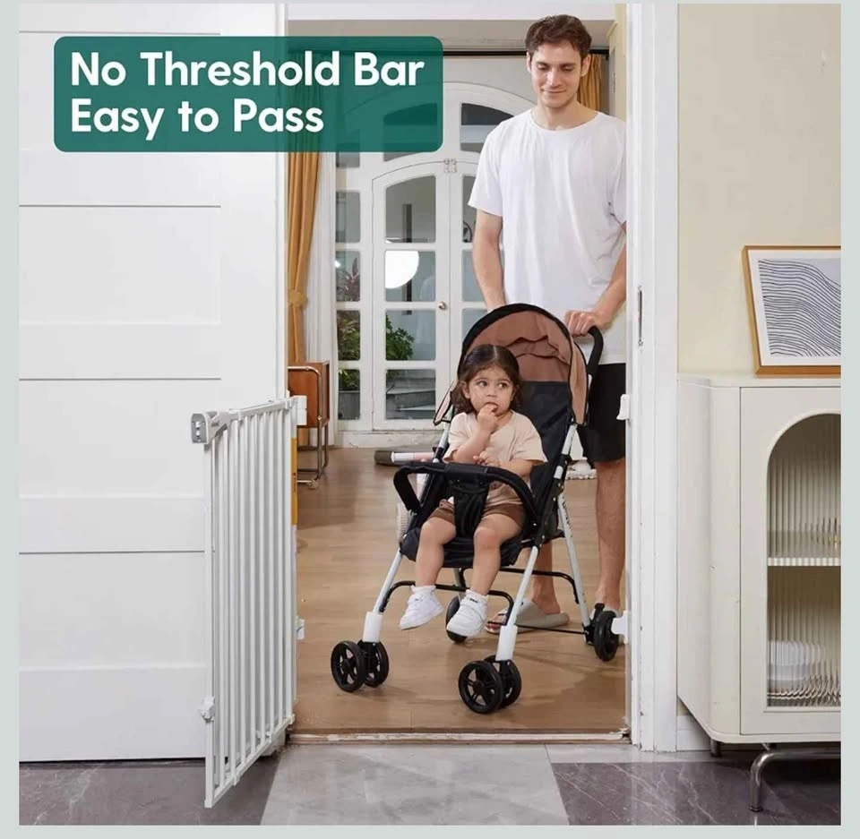 EXTRA WIDE WALK THRU DOOR: Unlike pressure-mounted gates, the hardware mounted gate will open the full width of the stair for easy walk-through; and the sill-free design minimizes tripping