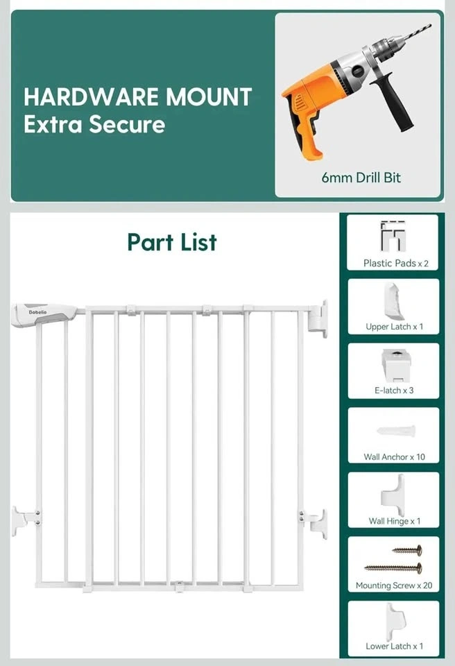 Secure Hardware Mount for Safety: This B17 is designed for drill-to-wall installation, which provides a rock-solid, permanent barrier on wooden, concrete, or brick walls. —the gold standard for child safety, especially crucial at the top of stairs
