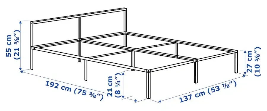 - Height: 55 cm (21 5/8") at the headboard, 27 cm (10 5/8") at the side