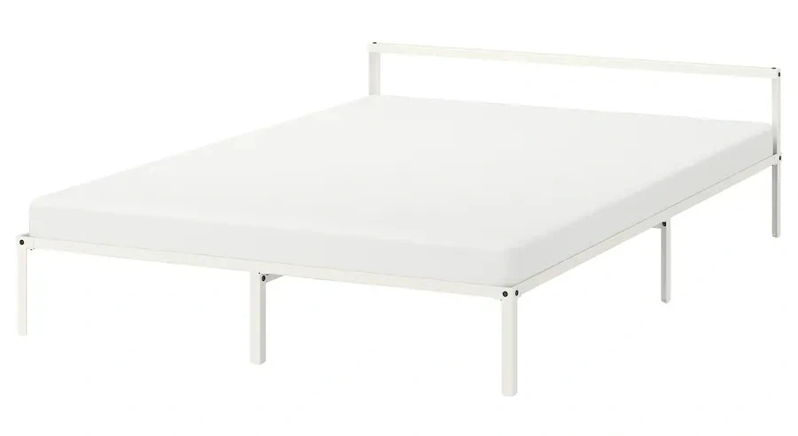 Selling a white IKEA Neiden full bed frame. BRAND NEW STILL IN THE BOX, slate also included! The simple design fits well with any bedroom decor.