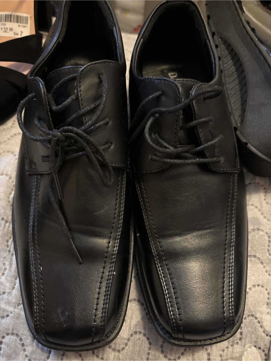 Selling a pair of David Eden black leather dress shoes. They are in good condition and ready for a new home! They are a classic style that can be dressed up or down size 7