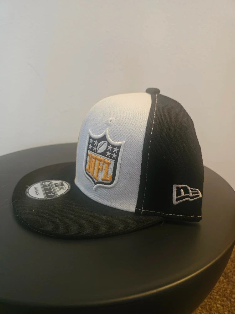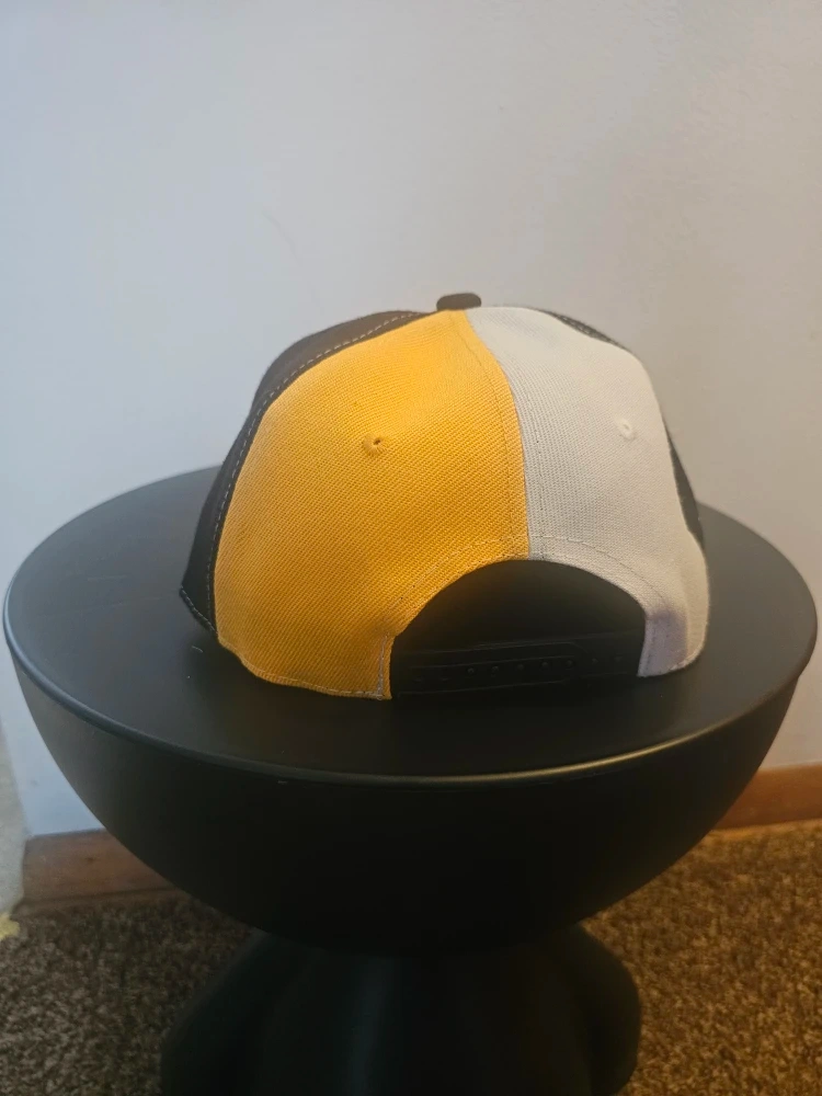 Here's a New Era NFL Pittsburgh Steelers snapback hat! It features a unique color block design with the Steelers logo on one side and the NFL logo on the other. It's in great condition and ready for a new home