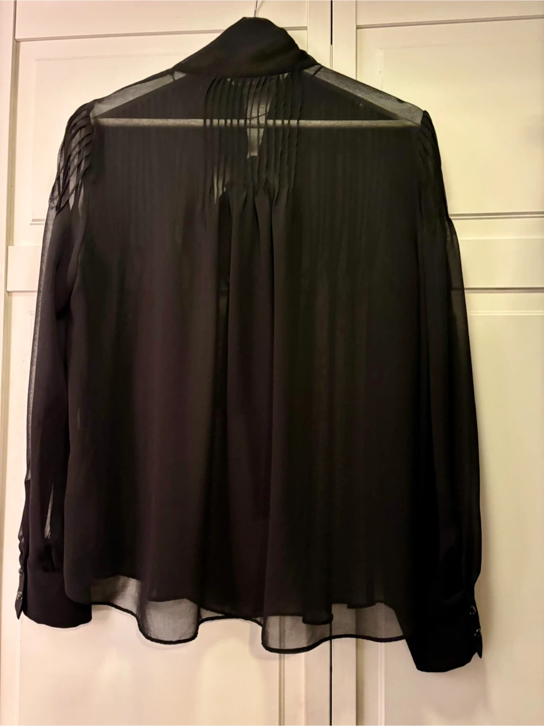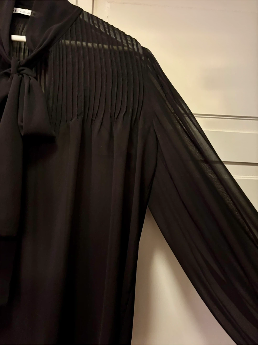 Buy & SellZara Black Sheer Blouse - Size LZara Black Sheer Blouse - Size L$15Selling a Zara black sheer blouse in size L. It has a tie neck detail and sheer sleeves. The blouse is made in Morocco and is in great condition!ConditionLike newSizeLBrandZara0 chats·0 favorites·3 viewsSELLERMISSEMAHell's Kitchen33228 reviewsWHERE TO MEETChase Bank