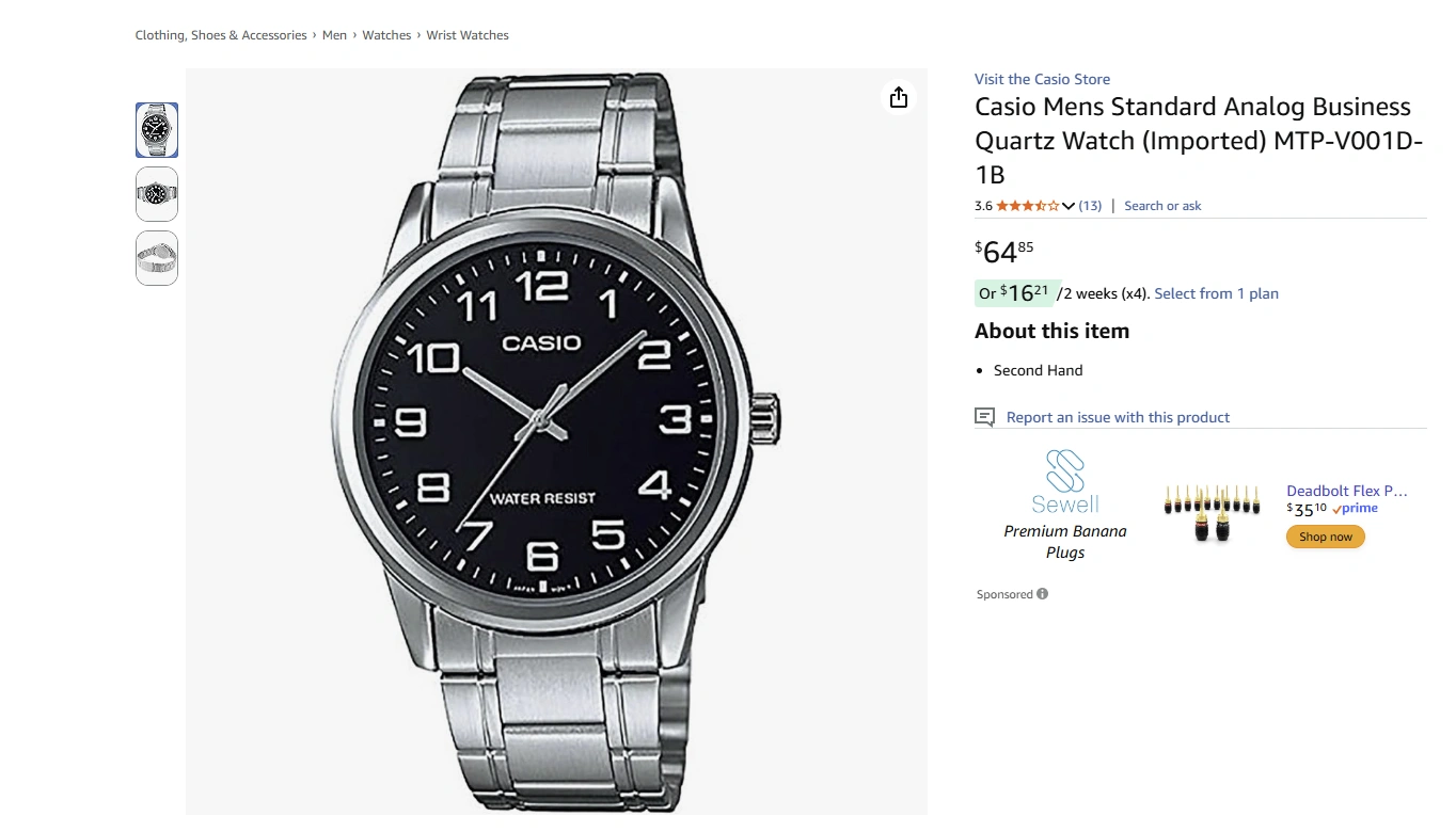 *Casio Men's Standard Analog Business Quartz Watch MTP-V001D-1B.