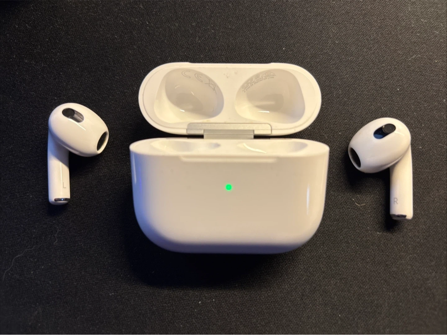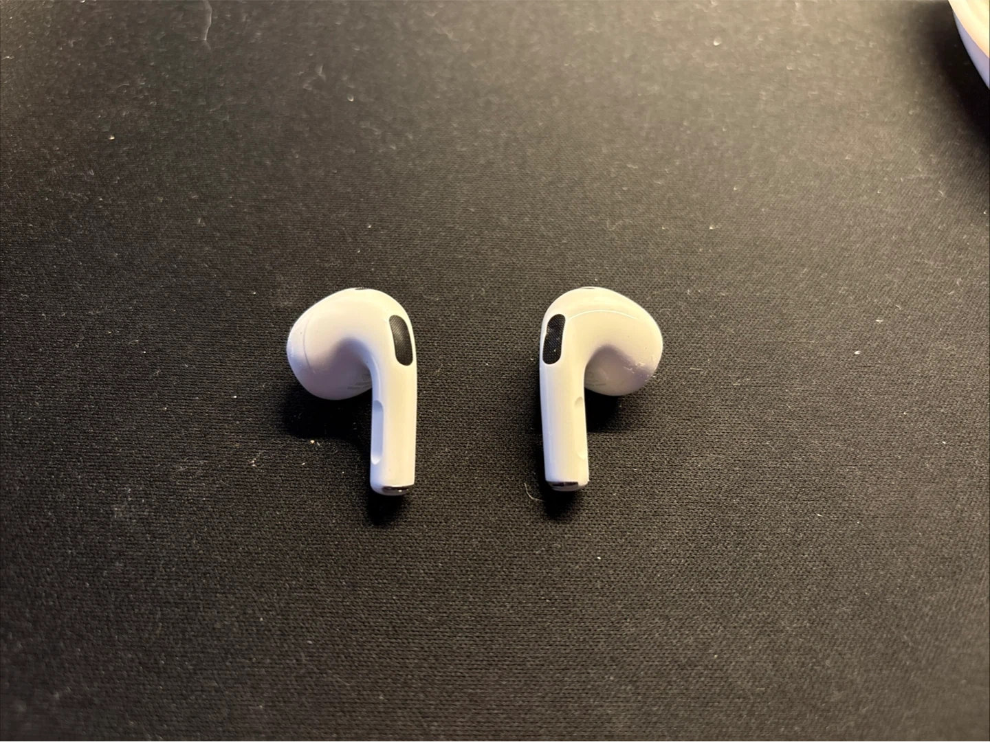 Selling a pair of Apple AirPods 3rd generation! They come with the charging case and a protective case. They are working perfectly but have a small scratch on one of the earbuds.