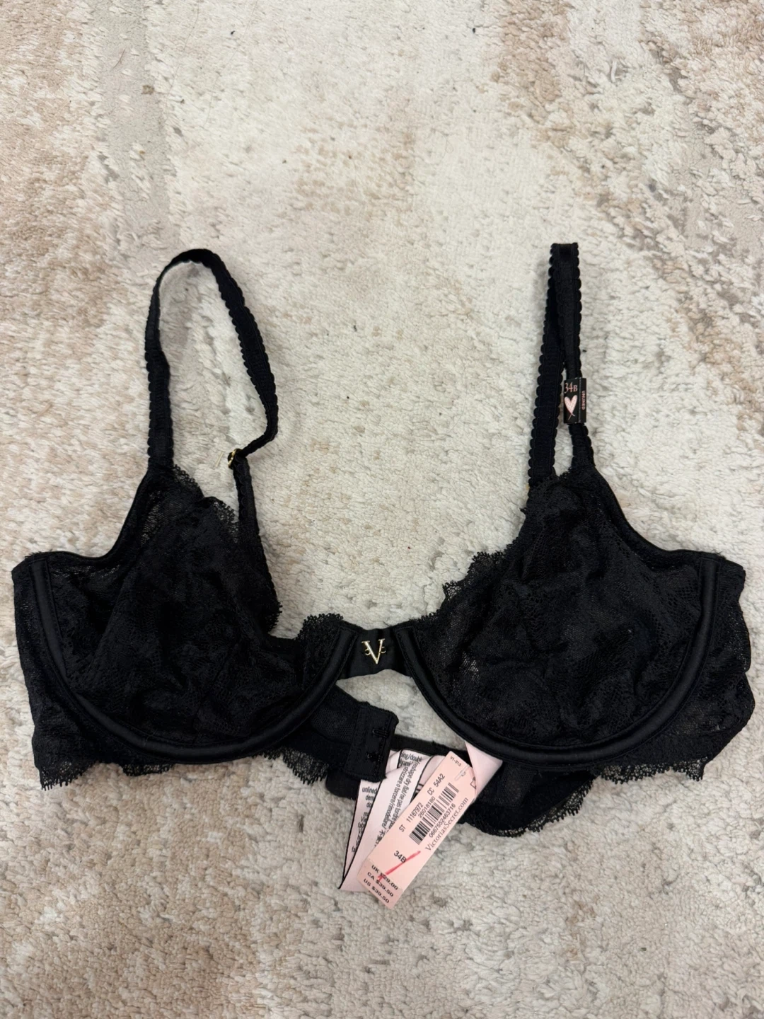 Selling a beautiful black lace bra from Victoria's Secret. It's brand new with tags and ready for a new home! The delicate lace detailing adds a touch of elegance, and the adjustable straps ensure a comfortable fit