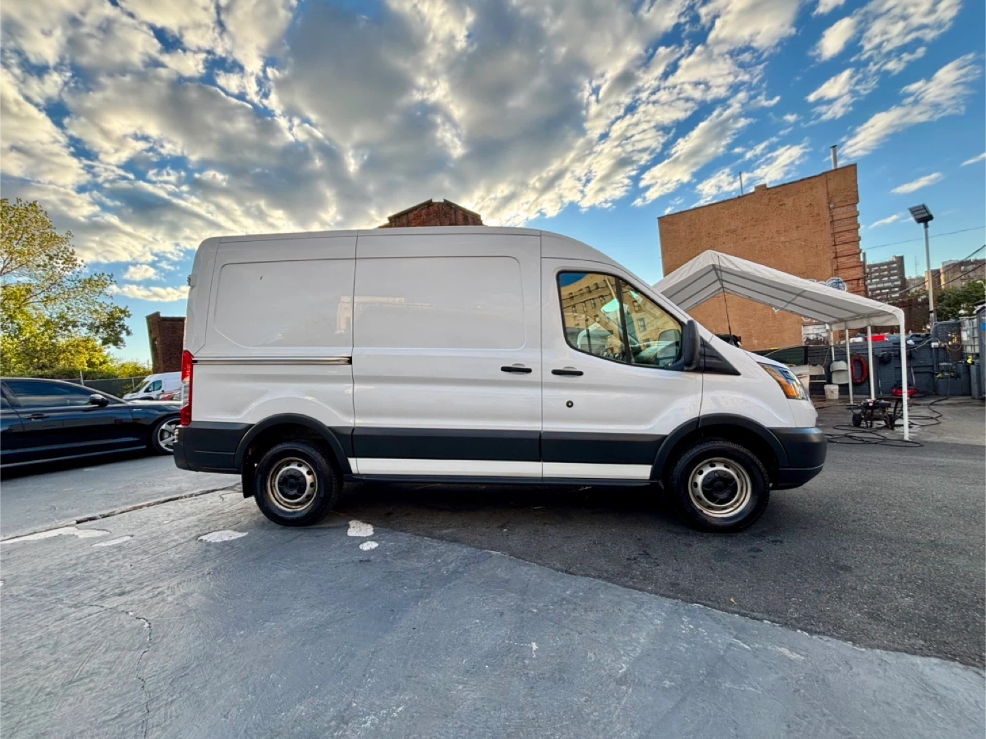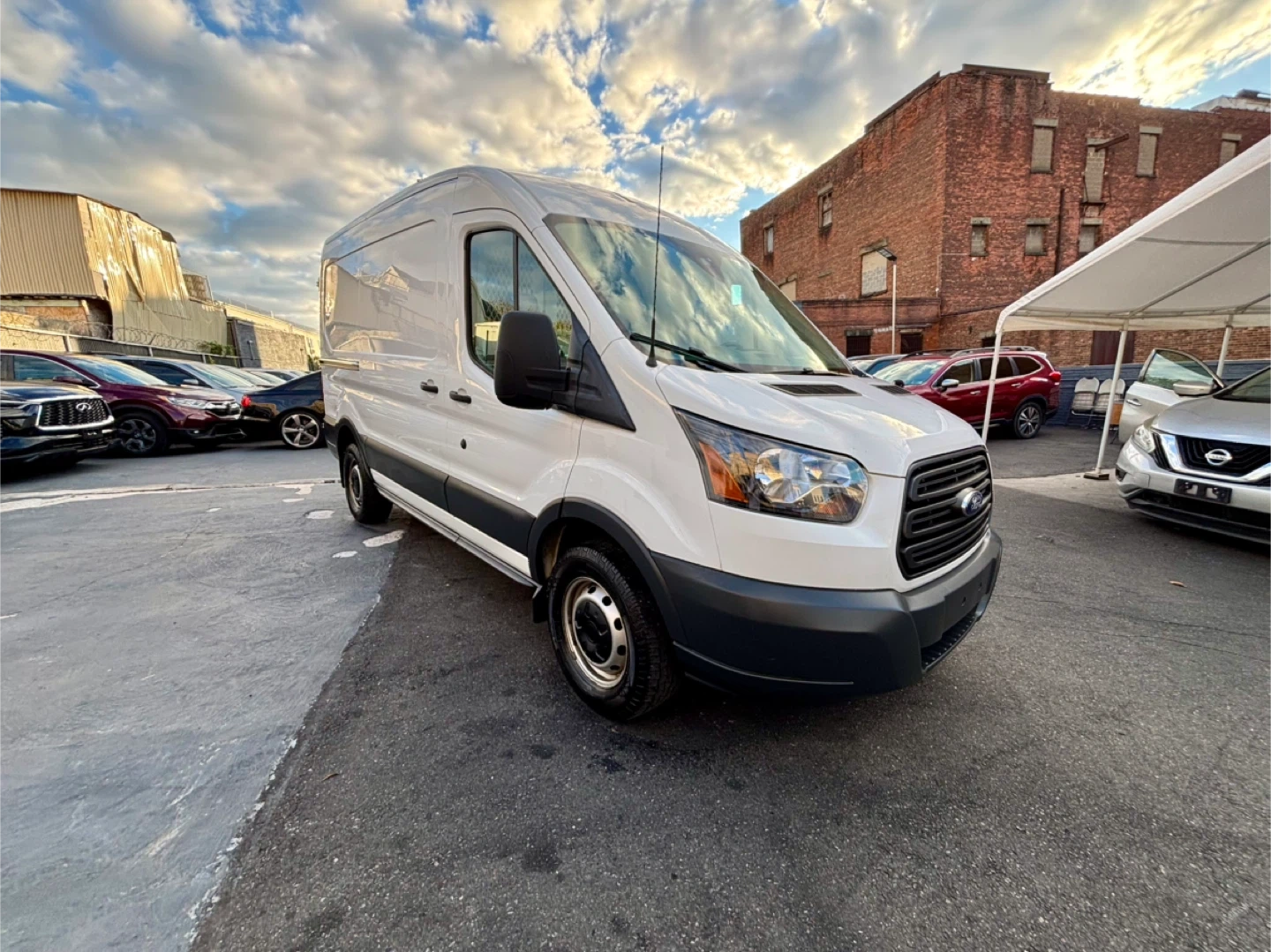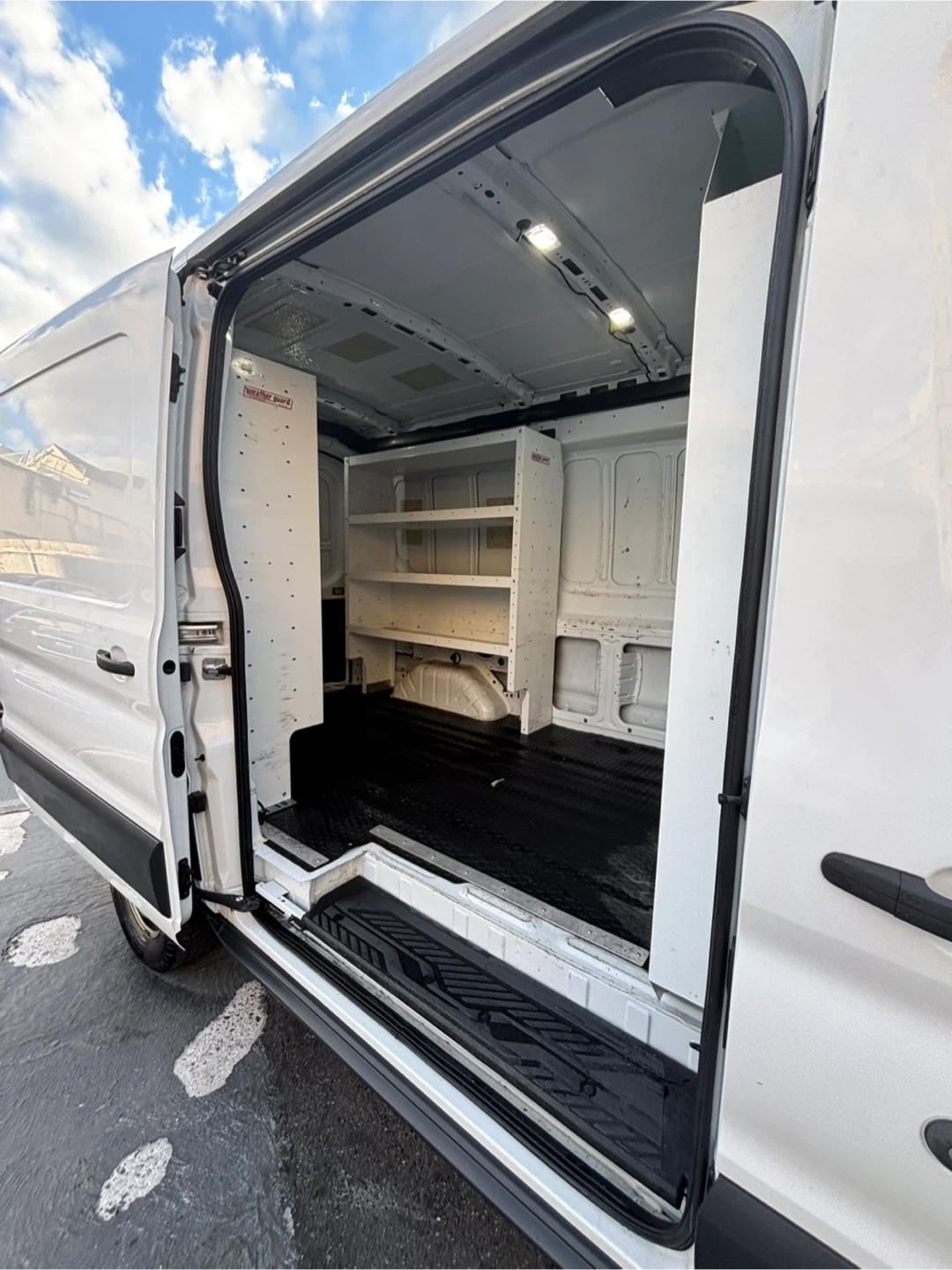 Selling a white Ford Transit Cargo Van. It appears to be in good condition and ready for work or customization! This van is perfect for various needs, whether you're looking for a reliable work vehicle or a blank canvas for a camper conversion