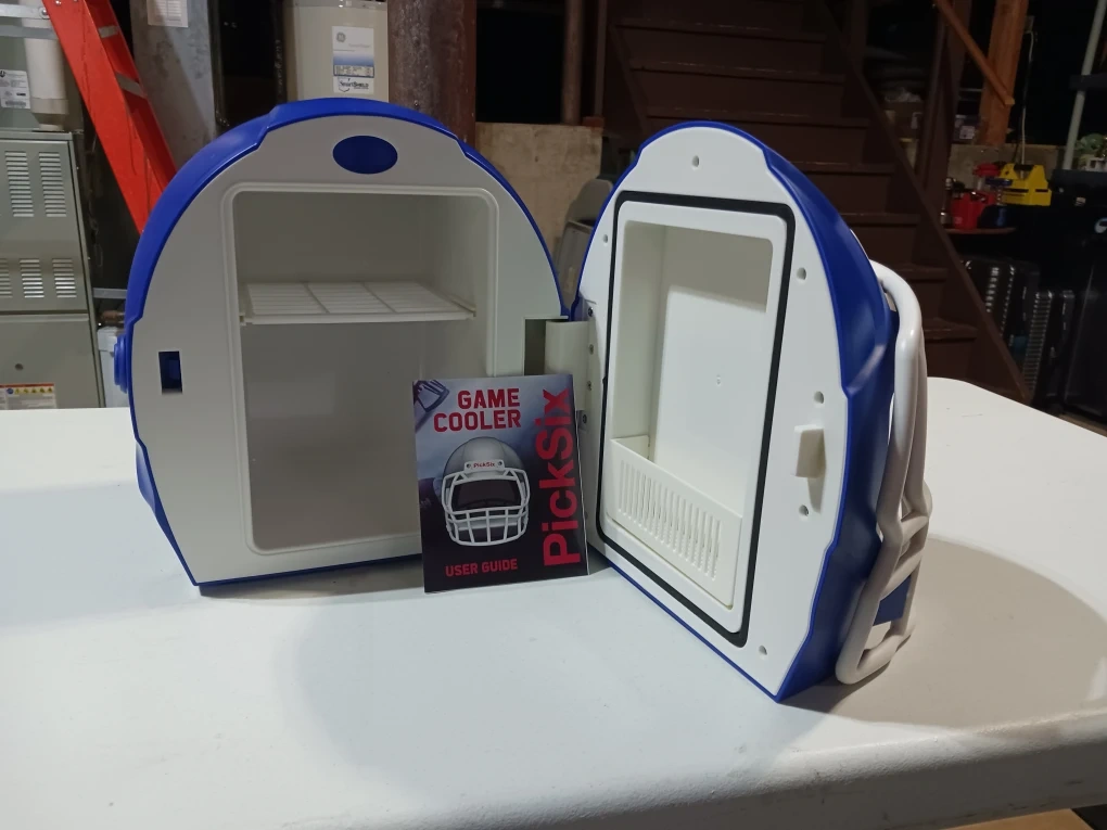 Selling an ionchill PickSix Game Cooler! It holds 6 x 12 oz cans and has a 4-Liter capacity. It features fast cooling technology and extra storage space for small snacks. It also has a low noise compressor for maximum efficiency. Chill like a champ on game day!