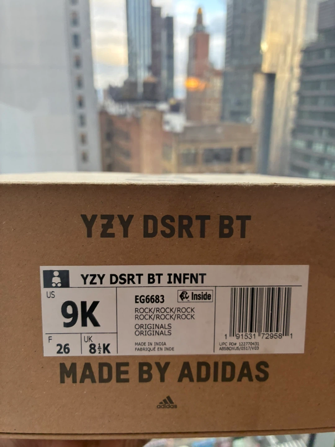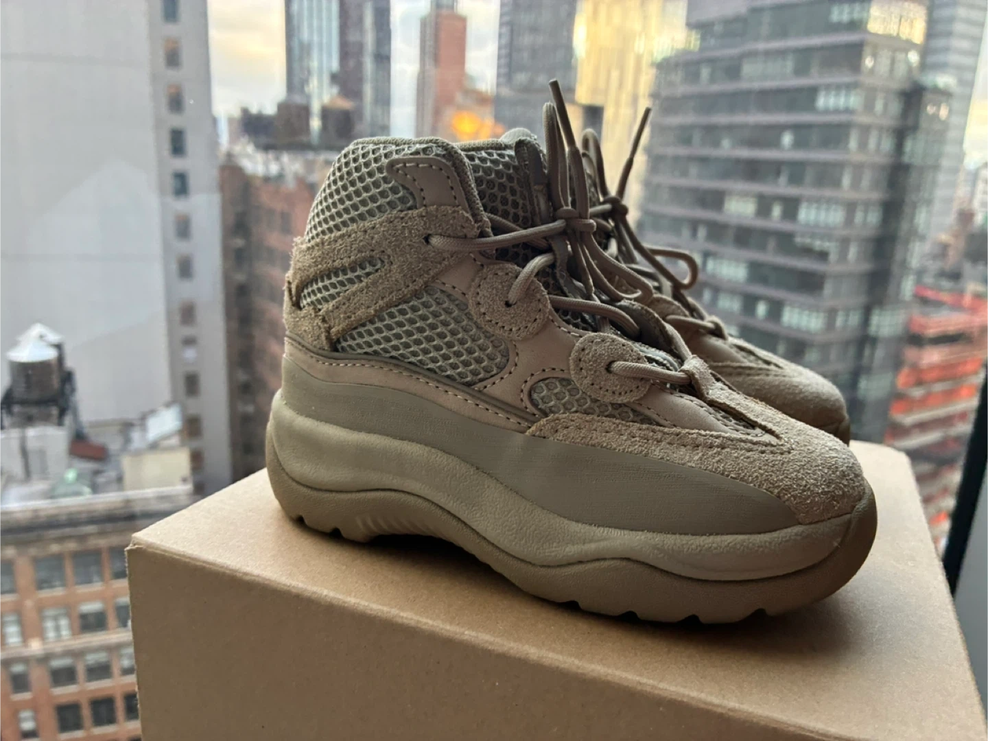 Selling a pair of Yeezy Desert Boot Infant shoes in a size 9. They are in great condition and come with the original box! Pre owned but barely worn Like new condition As is Offers welcome