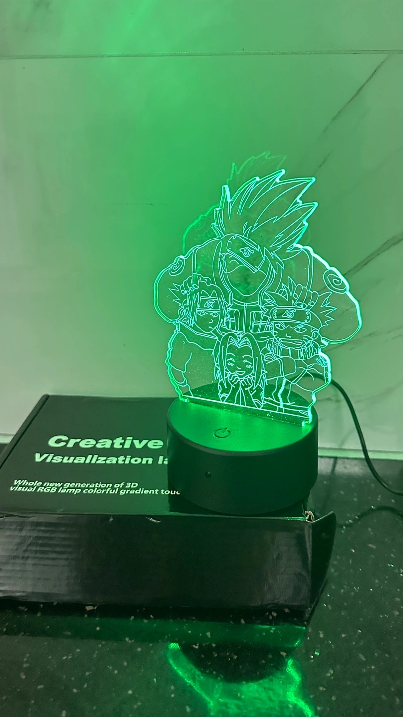 I'm selling a Creative 3D Visualization lamp featuring characters from Naruto. It cycles through a range of colors! The lamp is in great condition and comes with the original box.