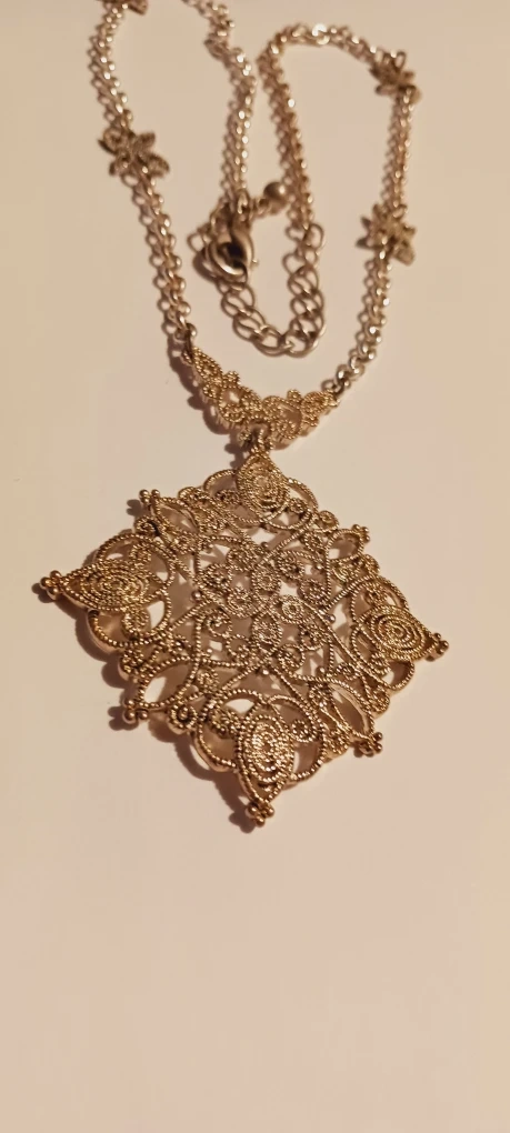 This is a lovely silver-tone necklace with a detailed filigree pendant. It's in great condition and ready to add a touch of elegance to any outfit!! 18" long. Excellent condition. ALL MY PRICES ARE NEGOTIABLE !!