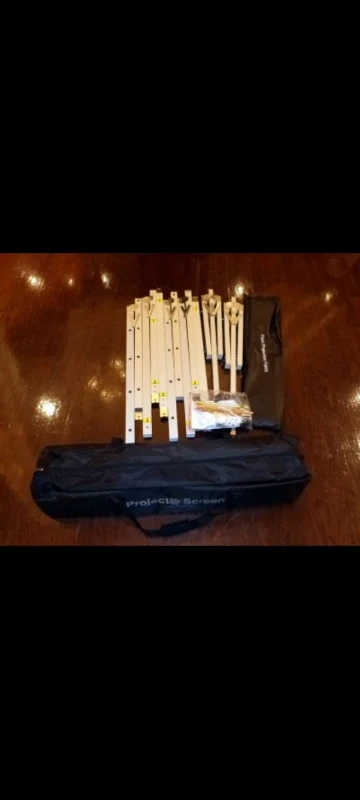 Hi this is for a indoor outdoor portable VAPEX 144" Projector Screen. Actual overall size is 133" wide and 111" tall. Is in excellent like new condition and only selling because I was relocated to a smaller place a smaller living room, and this won't fit wall to wall as shown in my pictures. So now I have to downsize my screen size. It has removable legs/stands, all accessories and instructions booklet are included. I added a video to show you how easy and fast this screen takes to put up. I paid $350+ at the time asking $235.