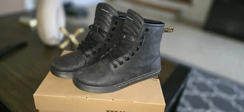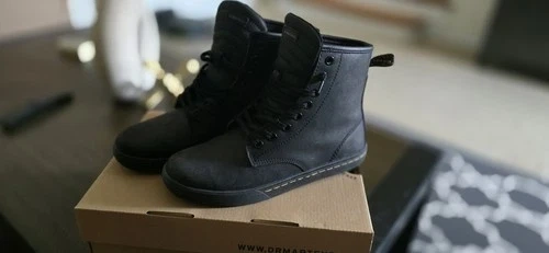 The Dr. Martens Sheridan Boots are a stylish and edgy choice for women, featuring a classic combat style design in sleek black. With a UK size 4 and US size 6, these boots are made with synthetic upper material and accented with eyelet detailing. Perfect for those looking to rock a rebellious look, these Dr Martens boots are a must-have for any fashion-forward woman.