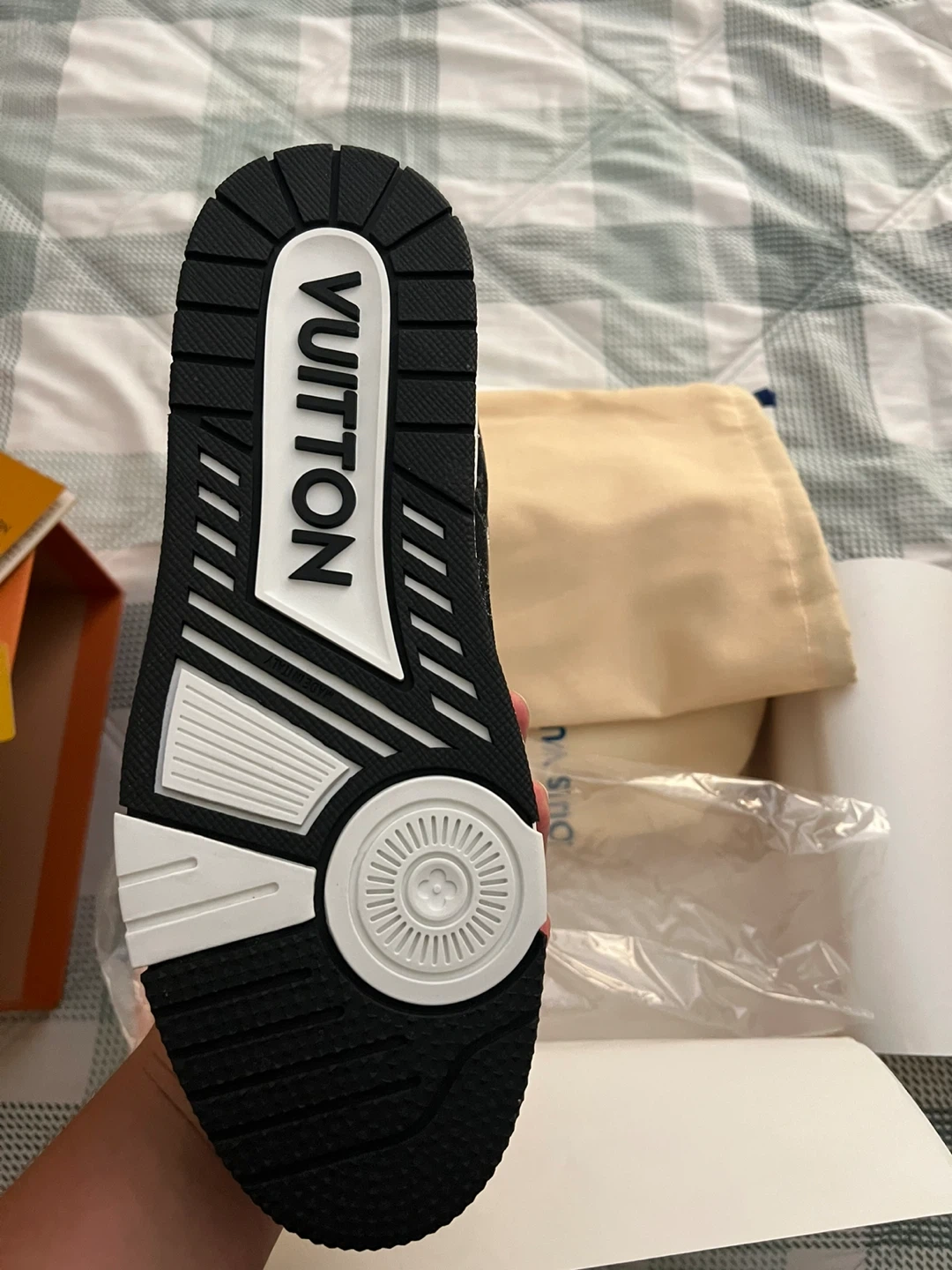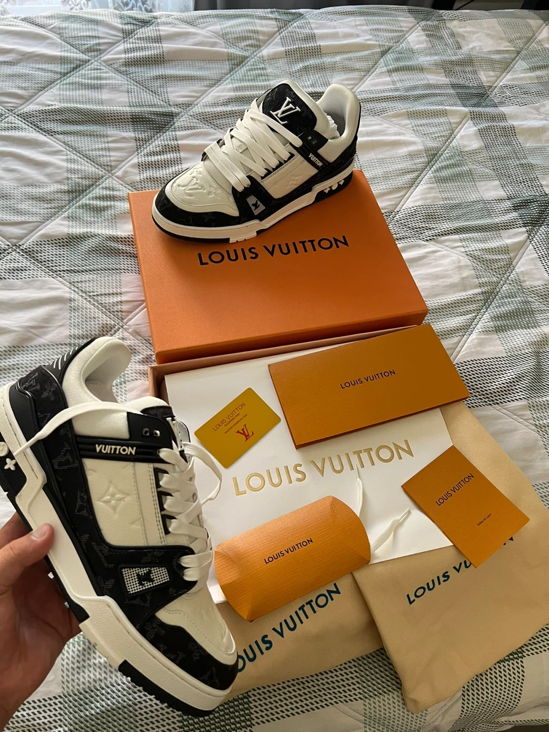 Selling a pair of Louis Vuitton Trainer sneakers. They come with the original box and all the accessories shown in the pictures. The shoes are black and white. Feel free to message me with any questions!