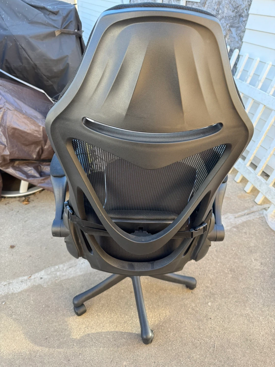 Selling a comfortable black ergonomic office chair! It's in good condition and ready to provide great support for your workday or gaming sessions. The mesh back allows for good ventilation, and it also comes with a lumbar support pillow for extra comfort. Great for your home office!