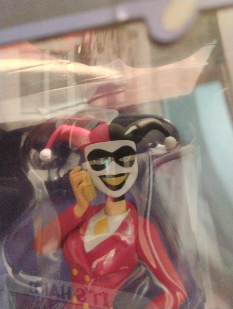 A Diamond Select Toys release! Who knew Harley Quinn was such a Mistress of disguise! In this all-new PVC figure based on Batman: the animated series, a suit-wearing Harley Quinn re-applies her make-up after going undercover as a lawyer in the classic episode "The Man Who Killed Batman." At her feet lies Batman's cape and cowl, with a "Kick Me" sign stuck to the back. This 9" scale PVC figure features collectible-quality sculpting and paint applications, and is in scale to all Gallery and Femme Fatales PVC figures. Packaged in a full-color window box.