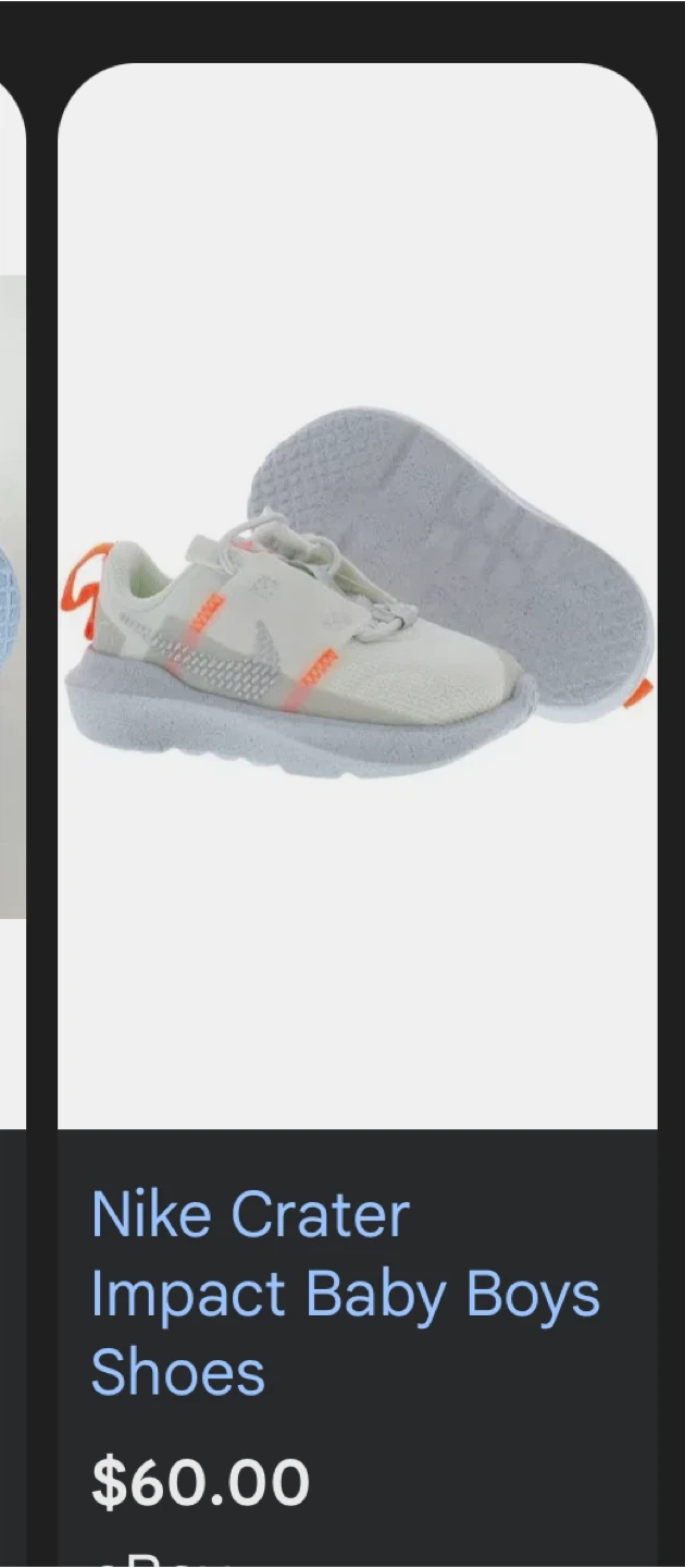 Selling a pair of Nike Crater Impact baby/boys shoes in size 5C. These shoes feature a white and gray color scheme with orange accents. They are in great condition and ready for a new home!