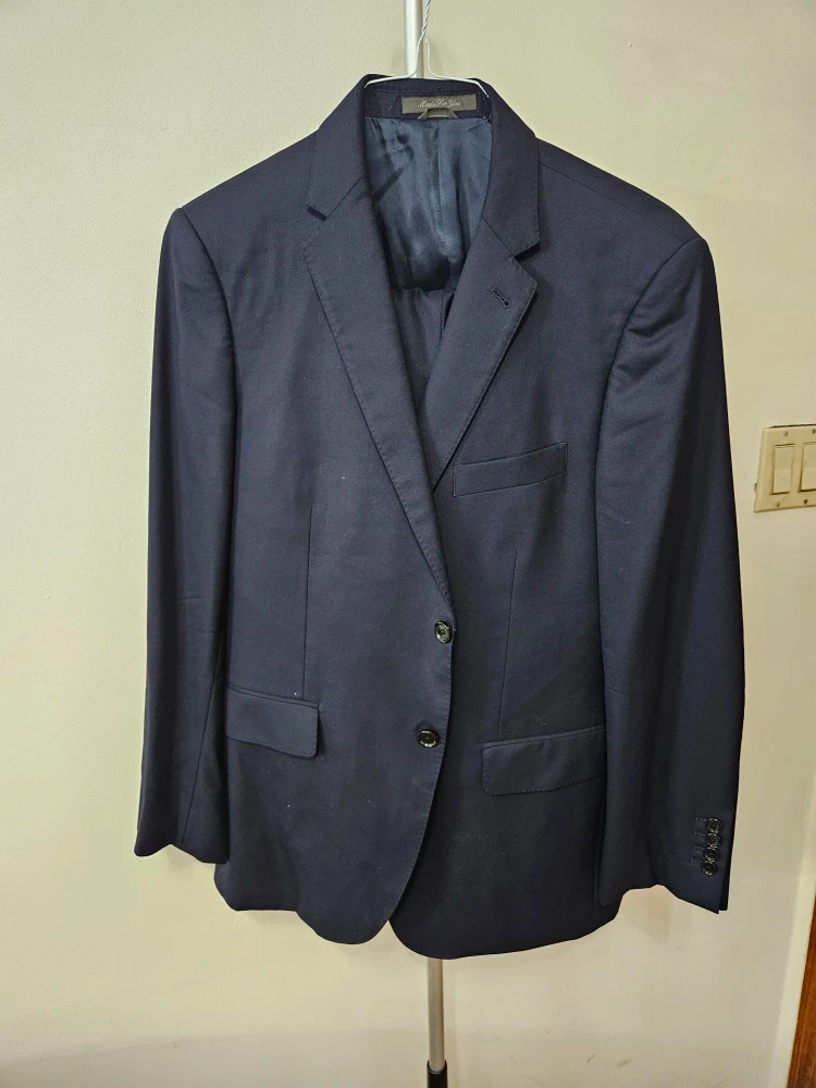 2 custom made suits size 44 regular jacket and size 36 pants .. blue and dark gray.