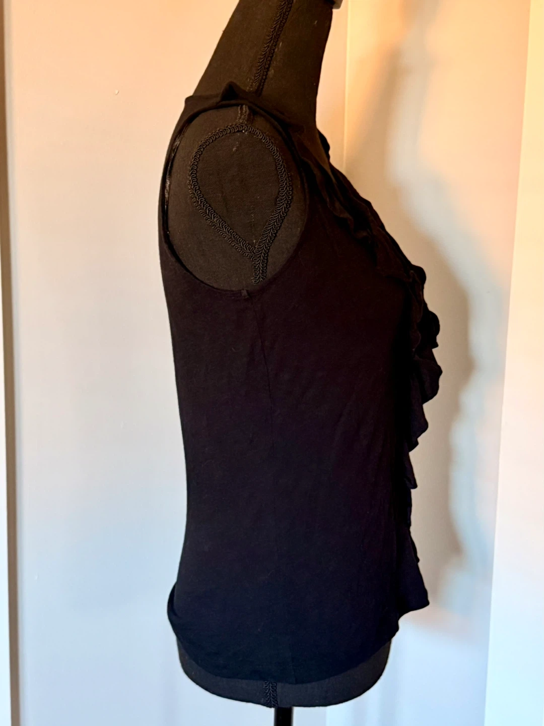Selling a cute Michael Kors black tank top! It features a V-neck with a ruffle detail down the front. It's a size small and in great condition!