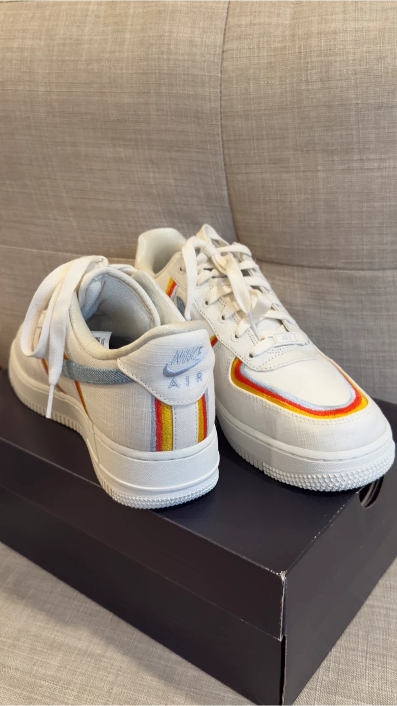 Selling a pair of Nike Air Force 1 '07 Premium sneakers in white! These stylish shoes are in great condition and come with the original box. They feature a unique design with colorful accents, making them a standout addition to any wardrobe. Never used.