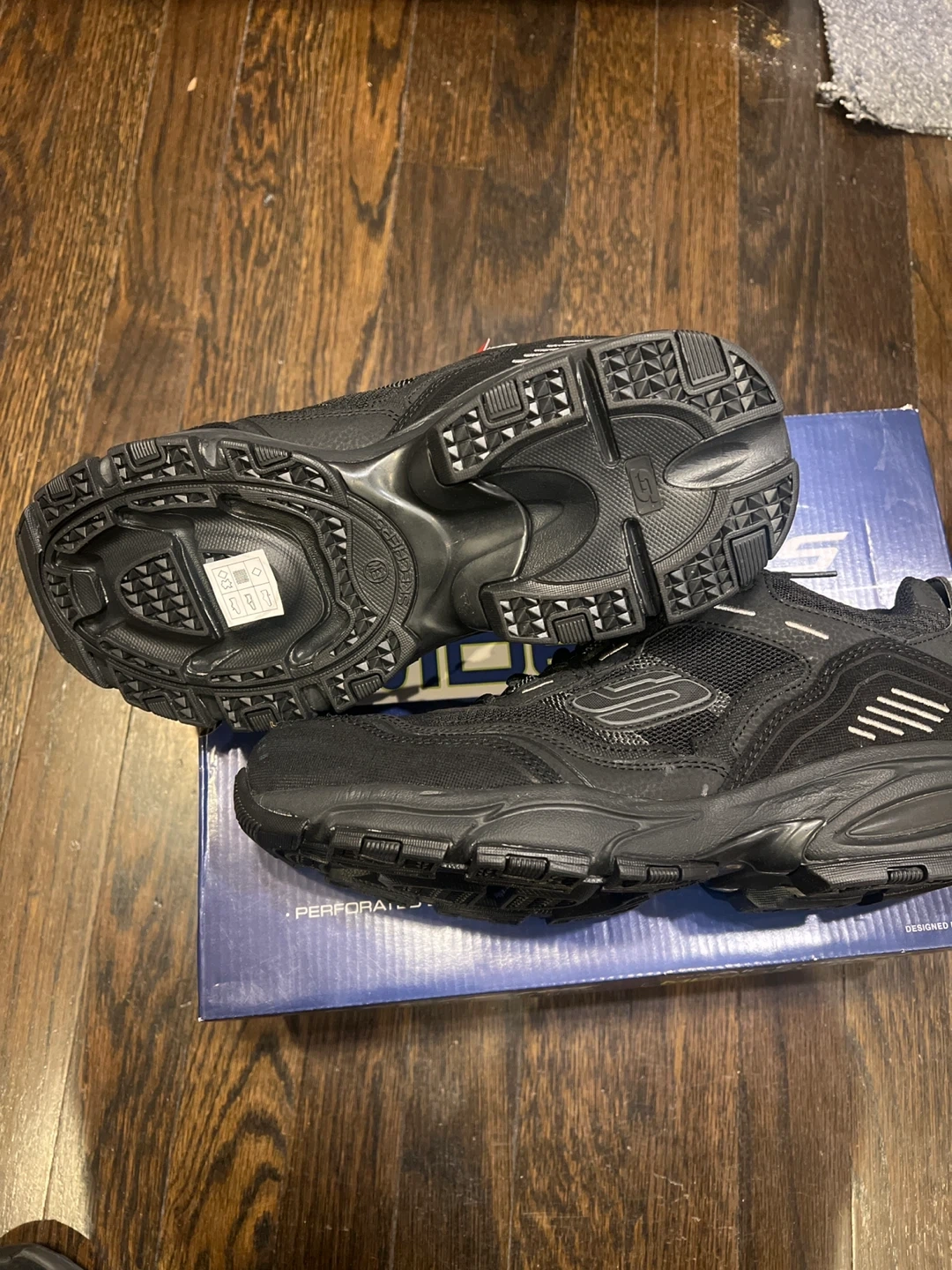 Selling a pair of Skechers with Air-Cooled Memory Foam. They are a wide fit and come with the original box! New never used/side 10.5
