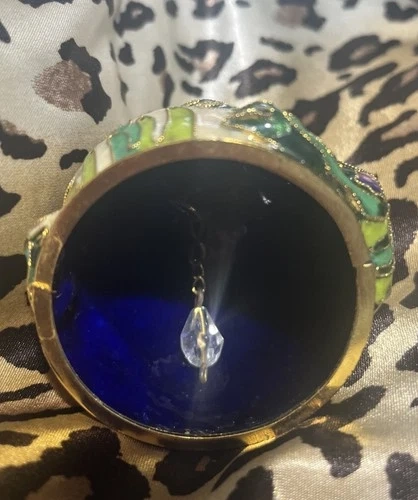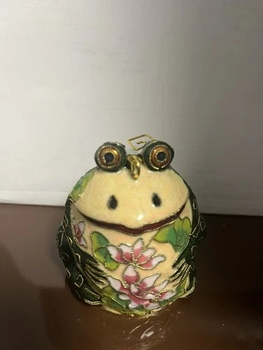 Hand Crafted Cloisonné Enameled Frog Bell ornament About 3” tall Lightweight non breakable Please pick green with red flowers or green with purple flowers - add to order notes please !!!Copper base enameled by hand Lasting beautiful heirlooms Comes gift boxed Discount is available on qty - check store for other items