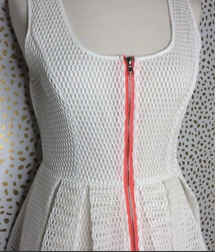 Jealous Tomato Net White dress Size Small 2-4. Mesh net fabric, lined. White with hot pink zipper in the front. Very chic, slightly above knee length. Excellence condition.
