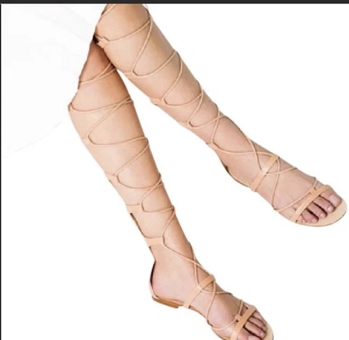 Zara Gladiator Leather Tie Around Sandals Nude Color 39/8