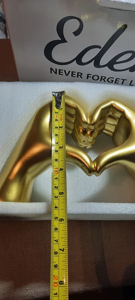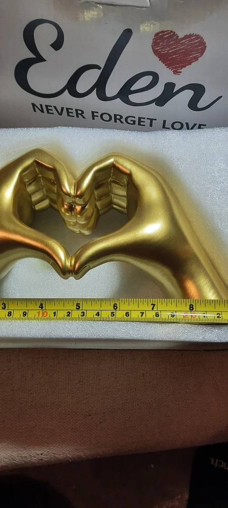 This is a beautiful Eden Eternal Heart Hands Sculpture in gold. It's brand new and still in its original box. The size is 5.3 * 3 * 1.2 inches. This sculpture would be a lovely addition to any home decor.