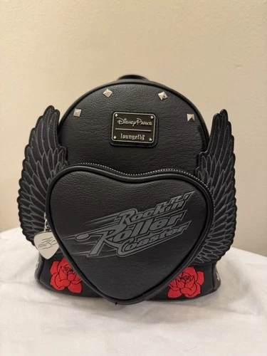 The Disney Rock N Roller Coaster Loungefly backpack is a stylish and compact accessory for any unisex adult. Made of faux leather with a black exterior color, this mini backpack features a zip closure and a 9-inch width. With the iconic Loungefly branding, this backpack combines practicality with a touch of Disney flair, making it a perfect choice for fans of both rock and roller coasters.