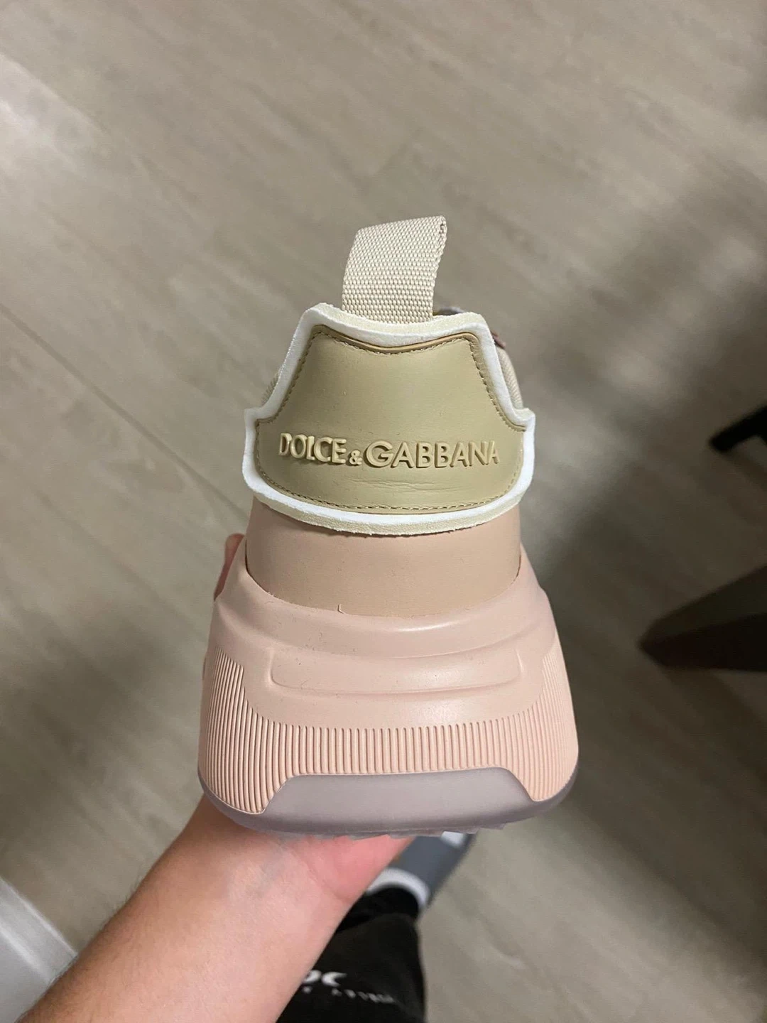 Selling a pair of Dolce & Gabbana sneakers, size 40. They come with the original box. The shoes are a stylish blend of pink and beige. Perfect for adding a touch of luxury to your everyday look