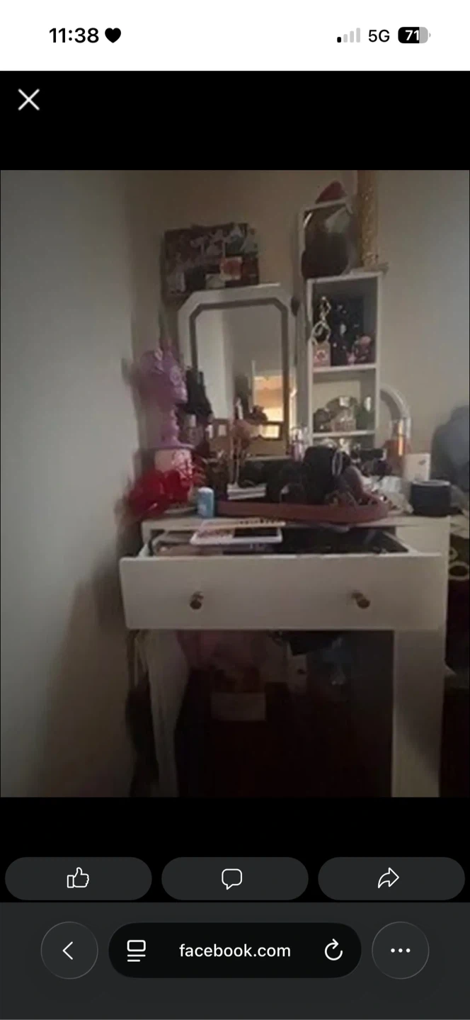 Great condition vanity. It’s small and can fit right in the trunk. *May be delicate* — on the side it has three open shelf’s, mirror turns on! —