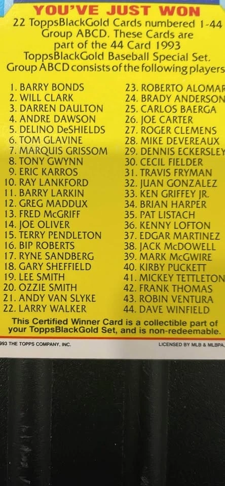 I have the entire set of the Topps Black Gold cards they put out in 1993 for sale. The entire list of players with a card in the set are listed on my last photo.