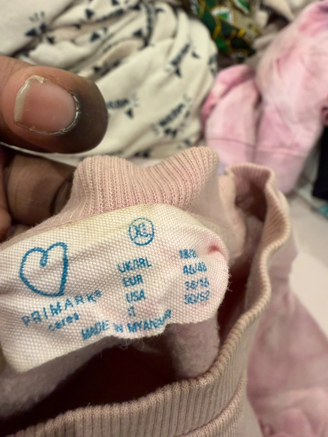 Selling a cute Primark sweatshirt with a pink tie-dye pattern and "Peace & Love" design. It's a size L and made of a soft material. Perfect for a comfy, casual look!