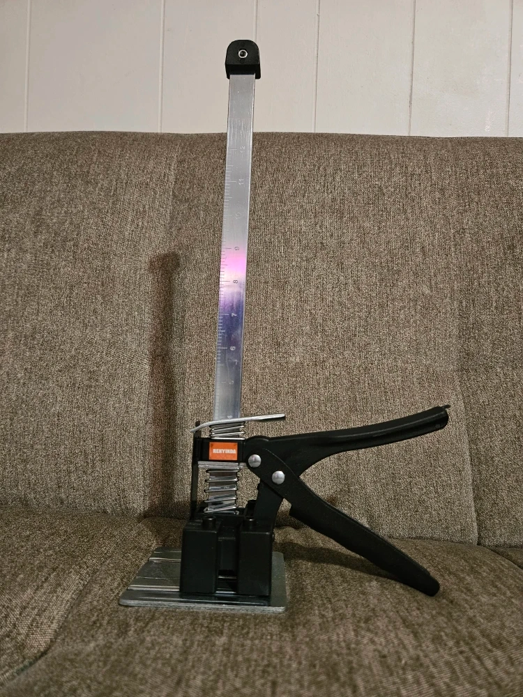 This drywall lift panel hoist is made with all-steel construction and features a thickened anti-slip handle for durability. It also has an all-steel height-reducing platen and scale ruler. The dimensions are approximately 15.7 inches in height, 4.1 inches in width, and 3.9 inches in depth.