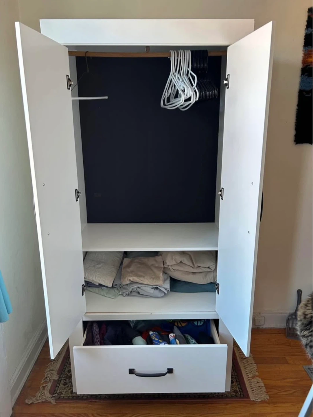 White Wardrobe with Hanging Rack