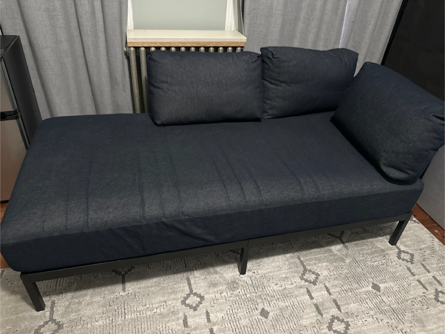 Selling an IKEA SÖDERHAMN sofa section in a dark blue color. It's in great condition and ready for a new home! This sofa section is super comfortable and perfect for lounging. It features a sleek design that fits well in any living space.