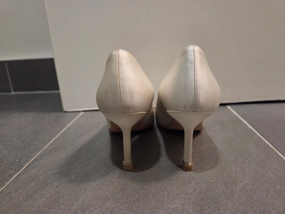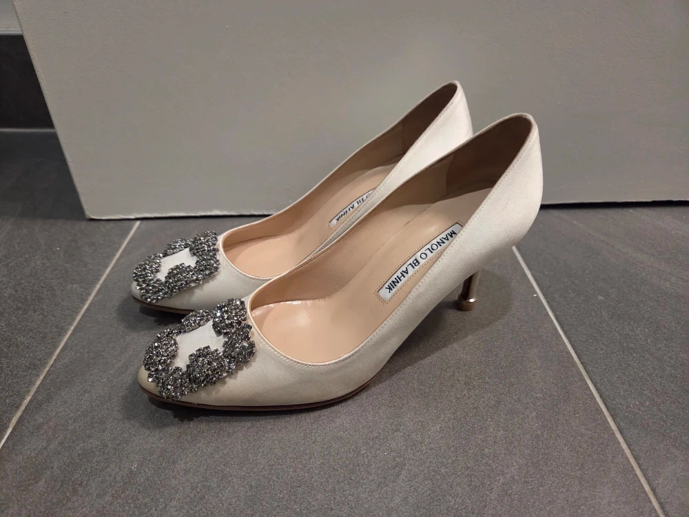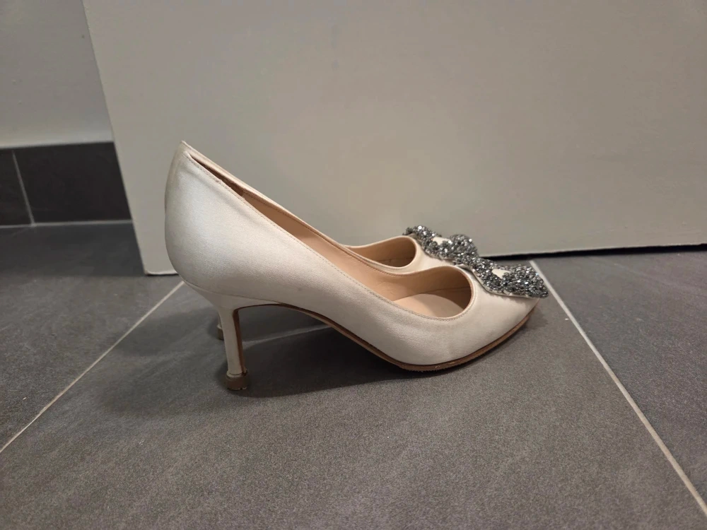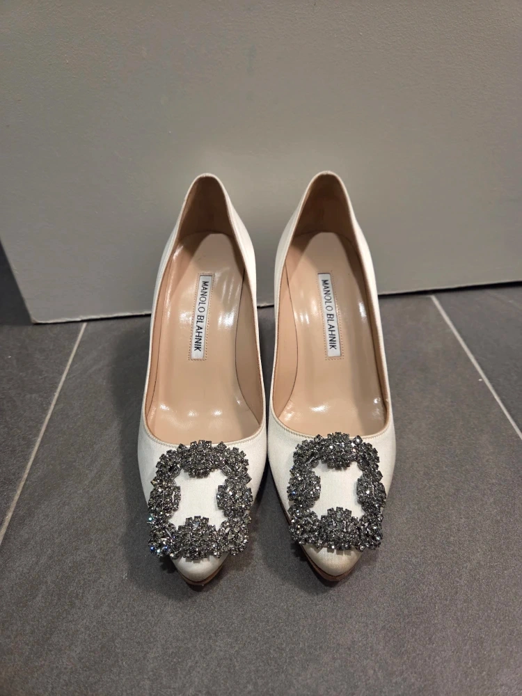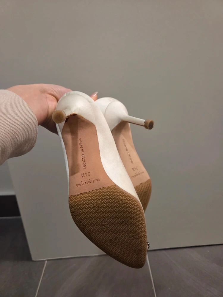 Manolo blahnik hangisi white satin Size 4.5 70mm heel