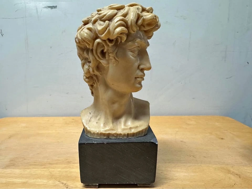 Classic decorative bust of Michelangelo’s David on a stone-style base. Stands about 6 inches tall total. Solid little art piece for a shelf or desk. Could use a light cleaning from storage, but overall in good shape. Pickup near Austin & Grand in Chicago – cash only.