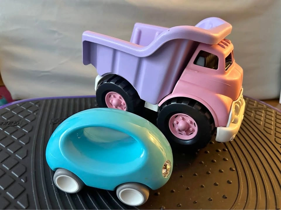 Green Toys: Dump Truck - Pink & Purple - Toy Construction Vehicle, Realistic Bed, Transportation, Push & Pull Play, Recycled Material,