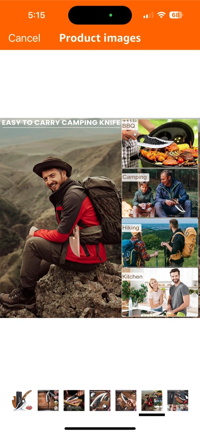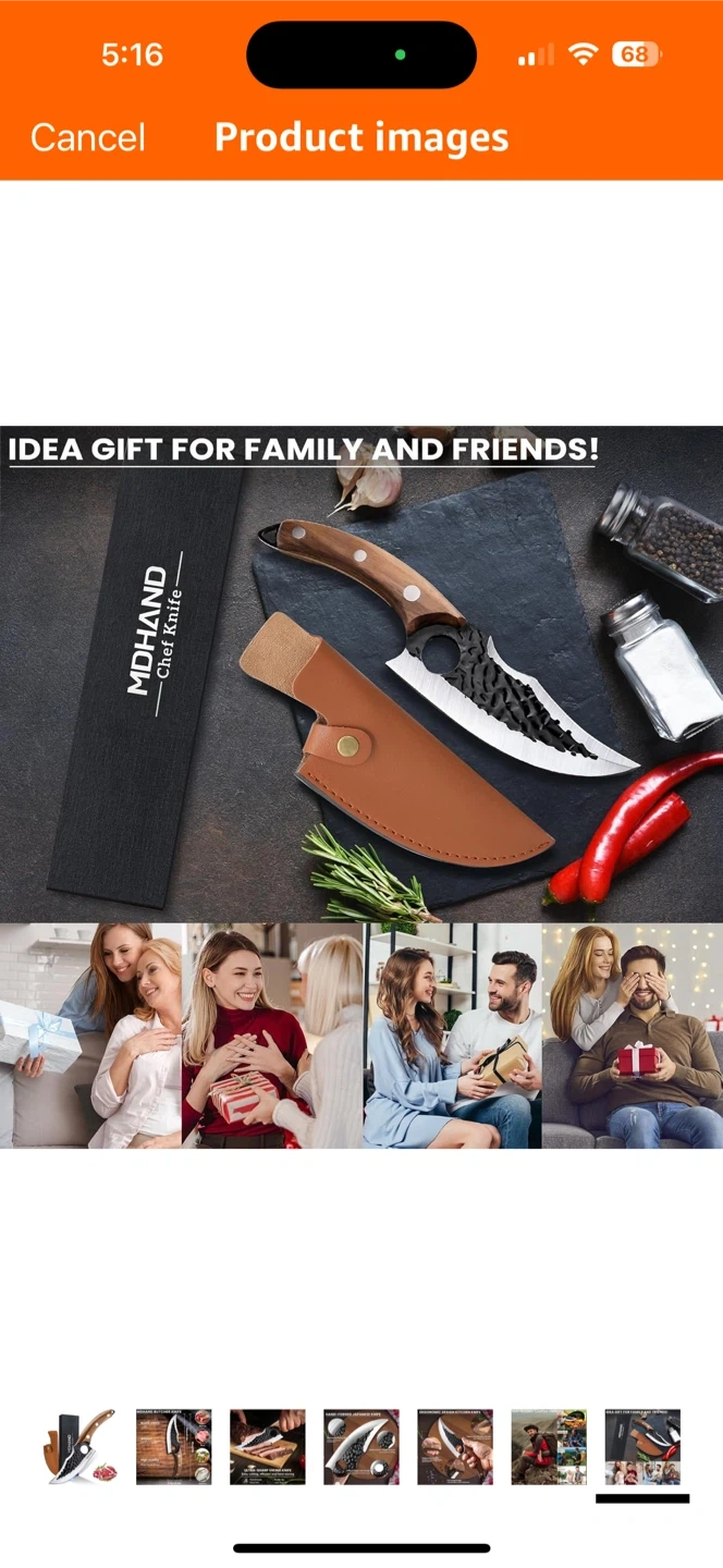 Selling a MDHAND chef knife. It's a hand-forged Japanese knife with an ultra-sharp narrow blade for easy cutting and slicing. It features a unique hand-forged texture to prevent food from sticking and a secure finger hole design for excellent control. The ergonomic wooden handle is non-slip and anti-greasy, and the full tang design is comfortable and well-balanced