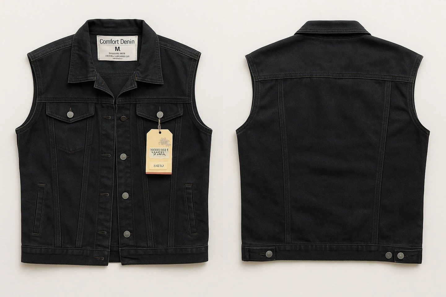 Unisex Sleeveless Black Denim Vest – Comfort Denim – Size M
