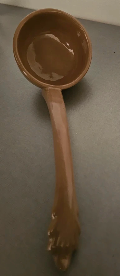 The tureen measures approximately 14 inches across from handle to handle, about 8 inches wide at the narrowest section, and 8 1/2 inches across at the wider ends. The height with the lid is approximately 9 1/4 inches. Without the lid the height is about 6 1/4 inches. The ladle measures 11".