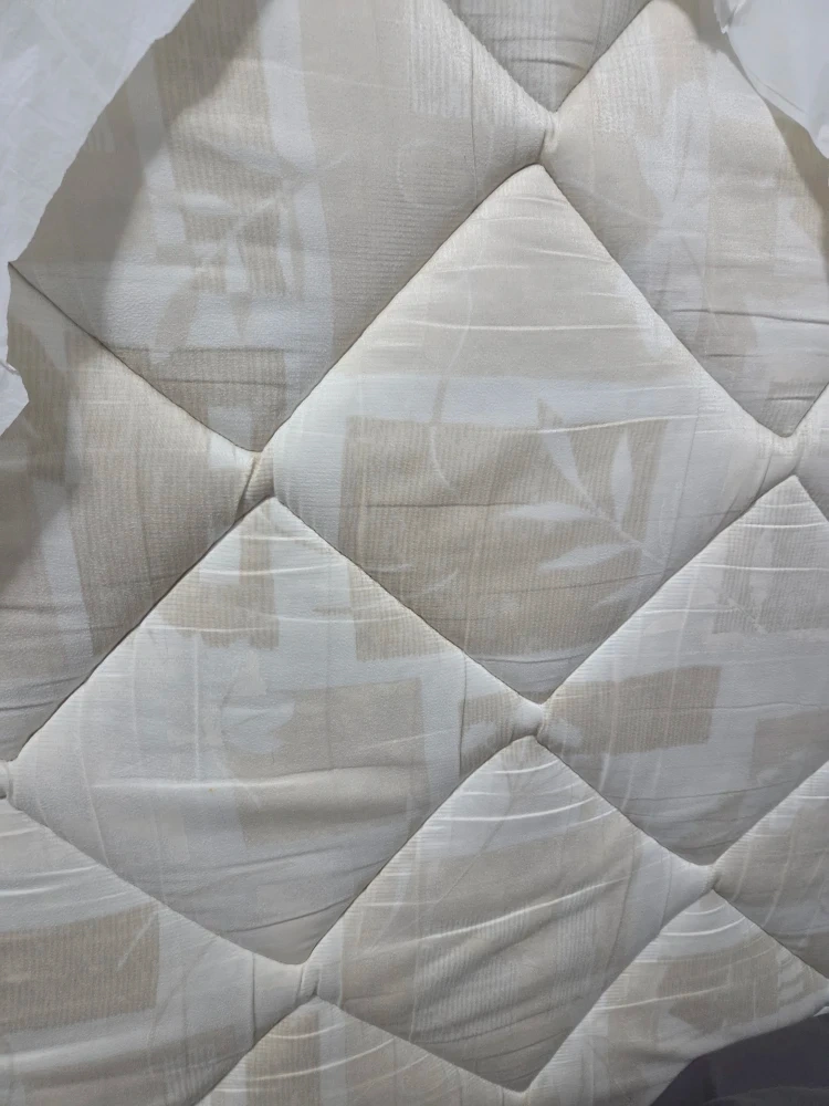 Selling a used mattress with a quilted pattern. It's not too soft, not too hard, just right, and barely used. No stains, no tears, it looks like new! If you're in the market for one, hit me up! Let's make this deal happen!