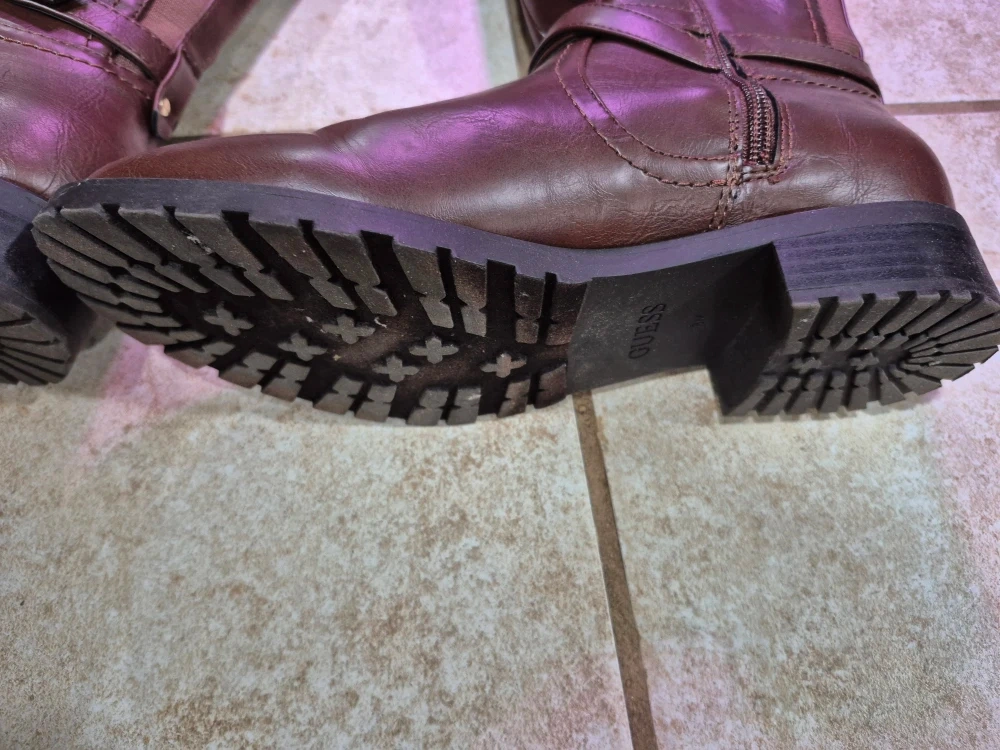 The G by GUESS Women's Tall Riding Boots in Brown are stylish and versatile, perfect for casual occasions during the winter and fall seasons. These knee-high boots feature a round toe and low block heel for comfort and a trendy look. Made from faux leather, these Size 8 M boots from the popular brand G by GUESS are a fashionable addition to any woman's wardrobe.