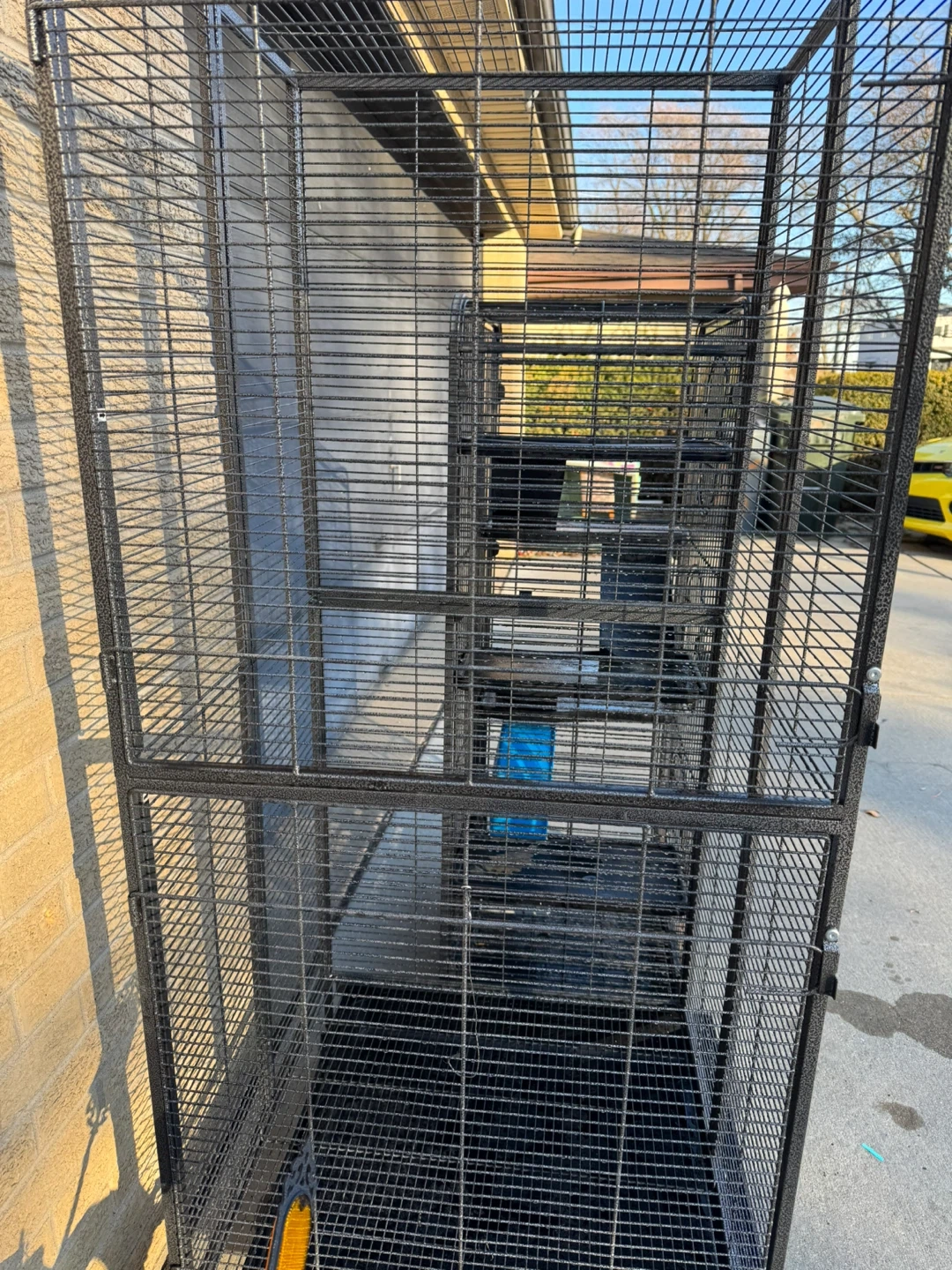 Selling a used metal cage, perfect for ferrets or cats! It's in good condition and ready for a new home. The taller one is a little over 5 feet tall and the smaller a little over 4 feet tall measurements are in the pictures. The smaller if has little stains but it’s very strong. And the larger has a little wire tied on the bottom but is like new can use it for different pets Large $90. And small one $75